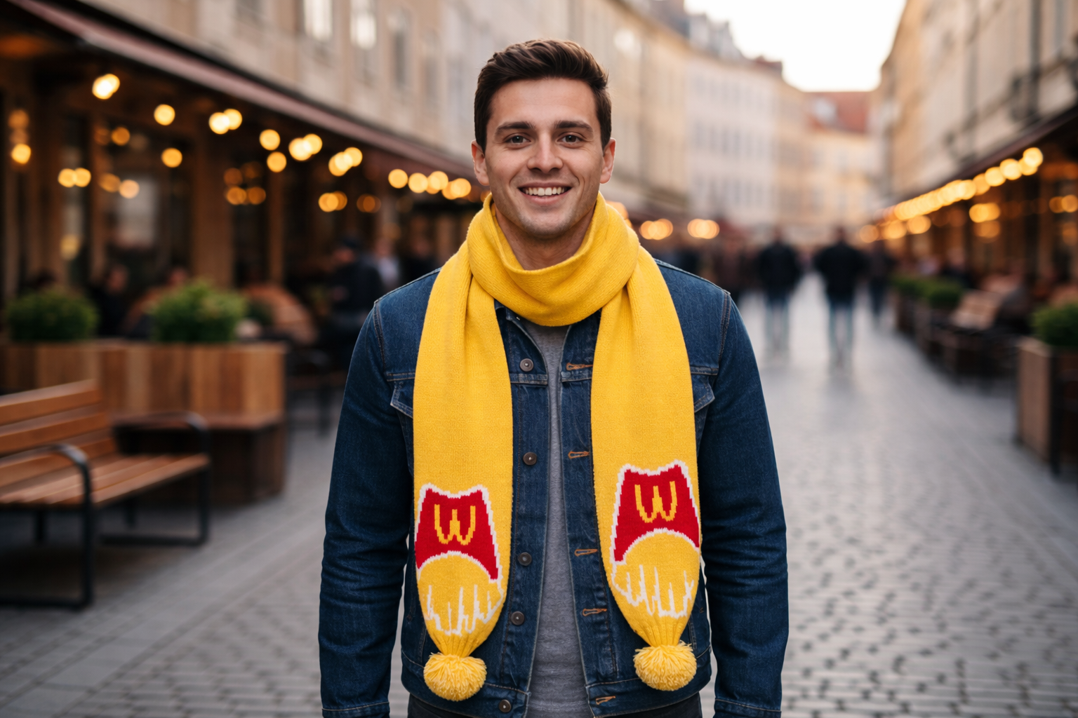 Cachecol acrílico macio e leve, com tamanho aproximado de 144 × 19 cm e inclui dois pompons decorativos. Design aplicado em ambos os lados, ideal para manter a visibilidade da marca de qualquer ângulo. Uma opção funcional e atraente, perfeita como produto promocional para as estações frias.